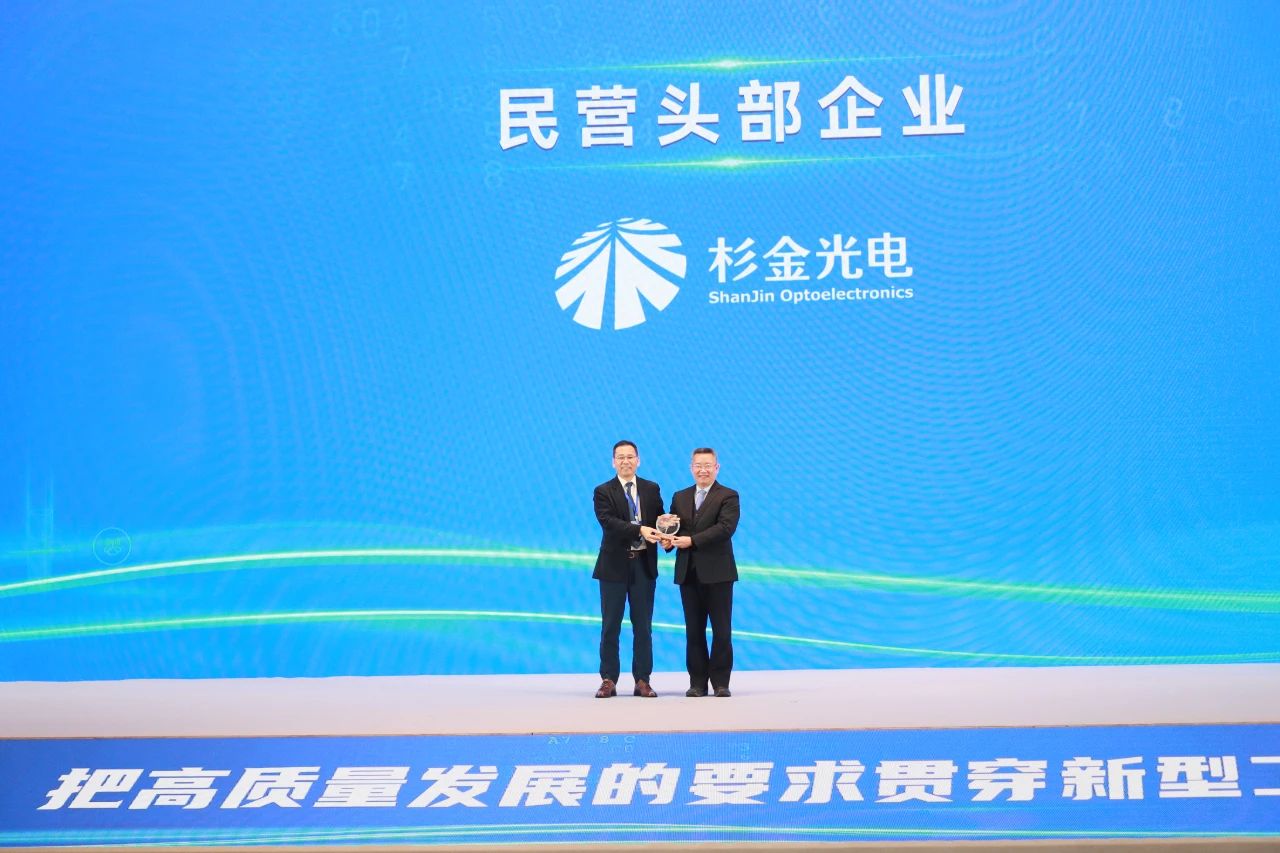 在大会的表彰环节,杉金广州凭借在偏光片领域的卓越创新能力和制造实力,荣获“民营头部企业”称号。这一殊荣充分展现了杉金光电在显示材料行业的领先地位和卓越贡献。