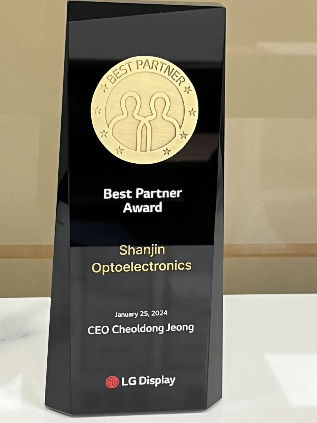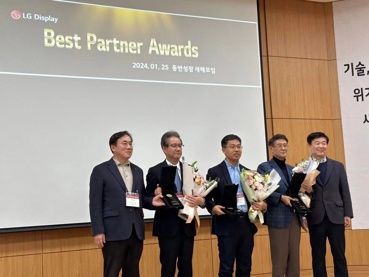 近日,LG Display在韩国举行同伴成长交流会,杉金光电出席大会并荣获由郑哲东社长颁发的奖项——Best Partner Award。